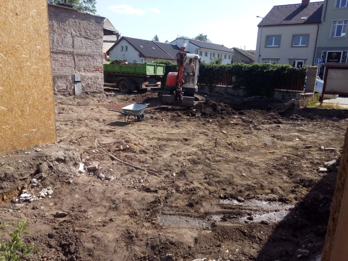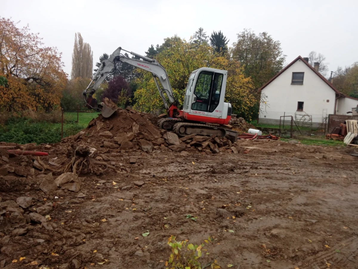 Na fotografiích najdete příklady toho, co pro naše zákazníky běžně zajišťujeme – od úprav terénu, přes výkopy kanalizace a přípojek, až po odvoz suti a zeminy.